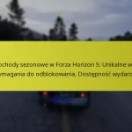 W każdym sezonie w Forza Horizon 5 gracze mogą uczestniczyć w specjalnych wydarzeniach i wyzwaniach, które oferują unikalne nagrody. Mogą to być próby czasowe, wyścigi i tematyczne wyzwania, które są zgodne z motywem sezonu. Ukończenie tych wydarzeń nie tylko zapewnia walutę w grze, ale także ekskluzywne samochody i opcje personalizacji.